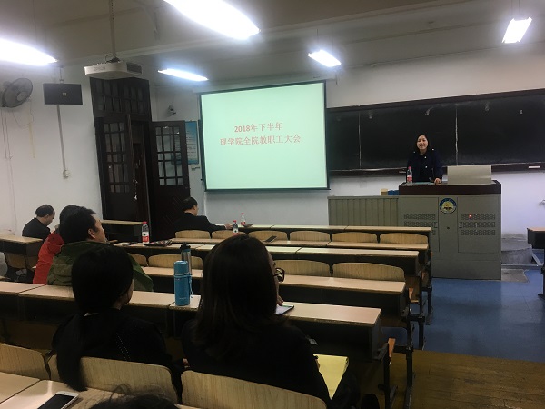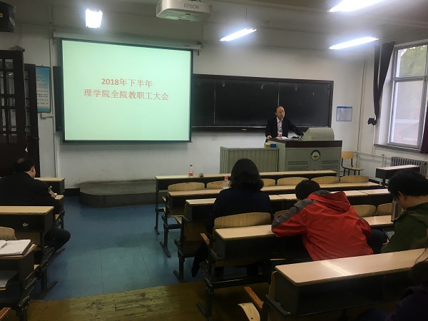 10月16日下午,学院在理化楼203召开全院教职工大会,院长刘青平,副院长李再兴、党委副书记张蕊参加会议。
