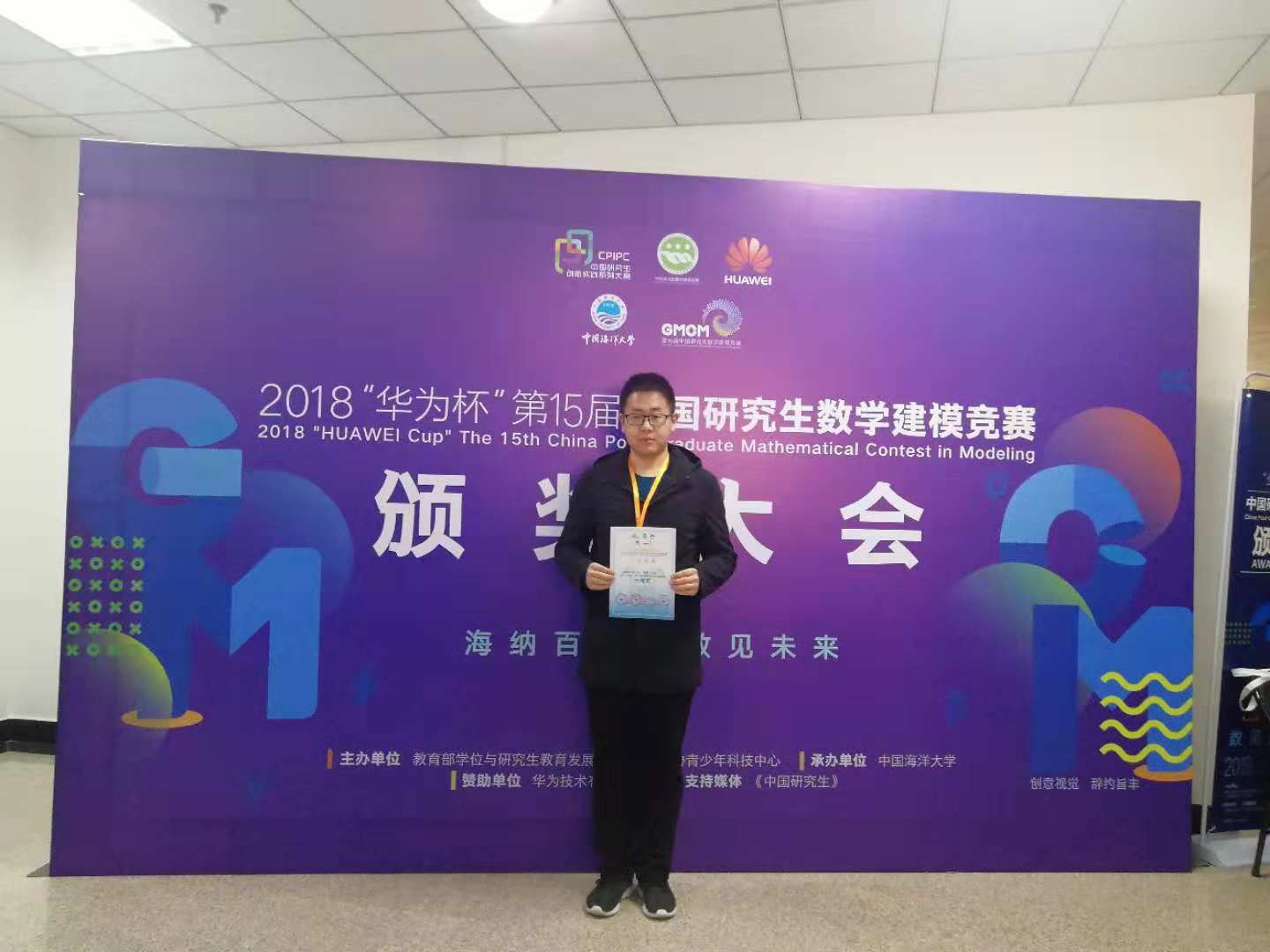 12月9日上午,“华为杯”第十五届中国研究生数学建模竞赛的颁奖大会在中国海洋大学隆重举行。我院研究生杜梦飞作为我校获奖学生代表上台领奖。此外,杜梦飞作为我校获奖团队代表还参加了本届竞赛的学术交流会,与兄弟院校校的优秀团队相互交换思想、交流心得,了解各支团队对赛题的独到理解,并且学习各优秀参赛论文所采用的理论与方法,为今后的参赛积累了宝贵的经验。