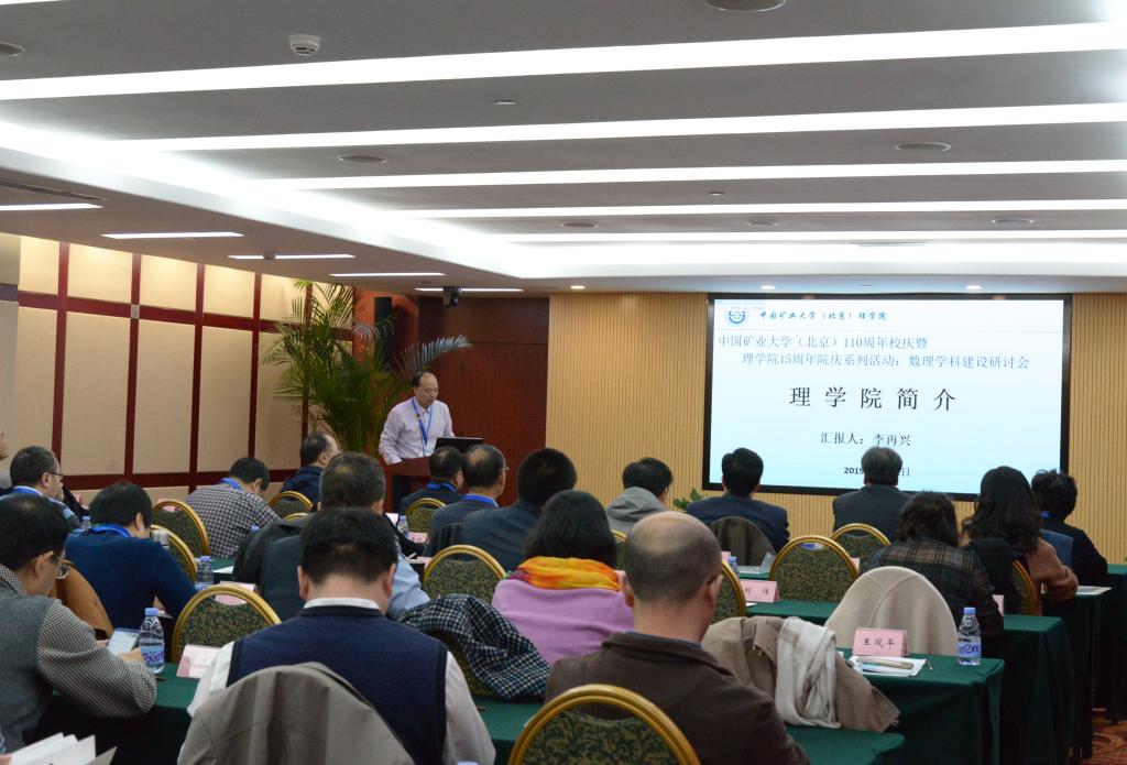 11月2日,中国矿业大学(北京)110周年校庆暨理学院15周年院庆系列活动——数理学科建设研讨会在北京西郊宾馆召开。北京邮电大学校长乔建永教授,中国科学院院士、中国矿业大学(北京)深部岩土力学与地下工程国家重点实验室(北京)主任何满潮教授,我校副校长王家臣教授出席了大会并致辞。
