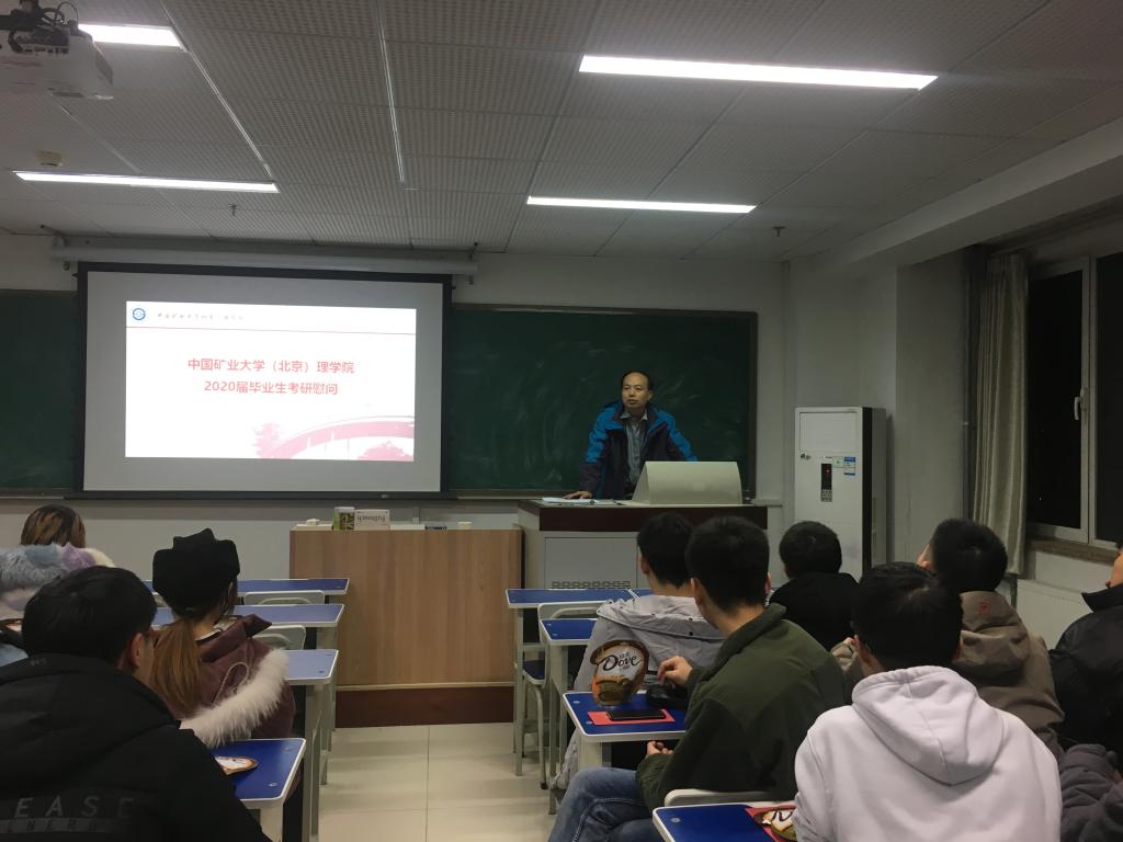 为鼓舞考研学生信心,舒缓学生的心理压力,12月17号下午,我院在逸夫楼1417组织2020届毕业生考研慰问活动。院长李再兴、院党委书记张蕊,毕业班辅导员张殿勋、何芬及40余名考研学子参加了慰问活动。