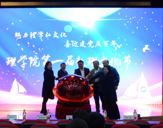 理学院院长李再兴教授对数理文化节七大板块活动做了详细介绍。最后,各位领导上台参加开幕仪式。伴随着倒计时,理学院第一届数理文化节正式拉开帷幕。