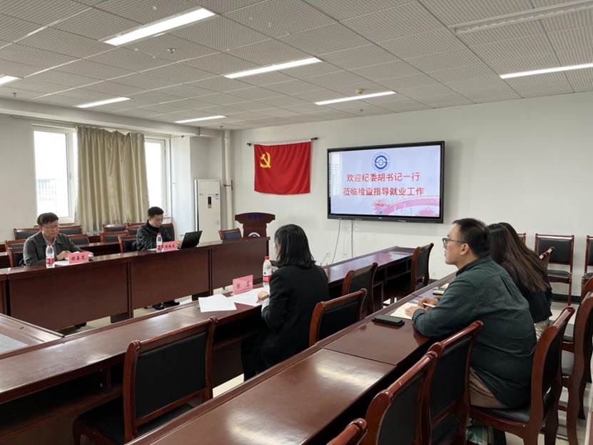 2022年4月29日上午,纪委副书记胡喜宽一行莅临我院检查指导就业工作。我院党委书记张蕊,辅导员张殿勋、秦宇彤、白冰参加会议。