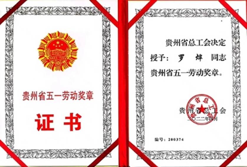 “贵州省五一劳动奖章”是贵州省总工会授予在中国特色社会主义建设中作出突出贡献的劳动者的光荣称号,是属于贵州省工人阶级的至高荣誉。