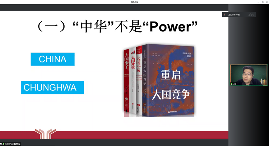 为巩固党史学习教育成果,推进学习教育常态化长效化,5月10日下午,我院邀请校党委宣传部副部长、马克思主义学院副教授卢刚为学院中心组、学院全体党员和入党积极分子线上讲授了一堂题为《深入理解中华民族伟大复兴主题》的专题党课。全体中心组成员、党员和入党积极分子等一百七十人参加了此次学习活动。