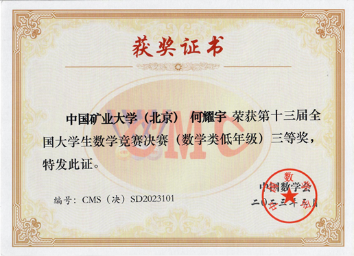 3月25-26日,第十三届全国大学生数学竞赛决赛在华东师范大学举行。全国大学生数学竞赛是国内最具影响力的本科生高水平学科竞赛之一,由中国数学会主办,本届竞赛报名人数218823人,来自全国来自32个省级赛区的968所高校。各省赛区共选派748人进入决赛,其中北京数学会选派67名优秀学生代表北京地区参加本次决赛,绝大多数来自北大、清华等顶尖高校。我院2020级本科生何耀宇作为我院首个入围决赛的学生,在决赛中取得了三等奖的成绩。经过十多年的努力,我院学生成功入围全国大学生数学竞赛决赛,充分展示了我院本科生的数学实力和教师良好的教育教学质量。