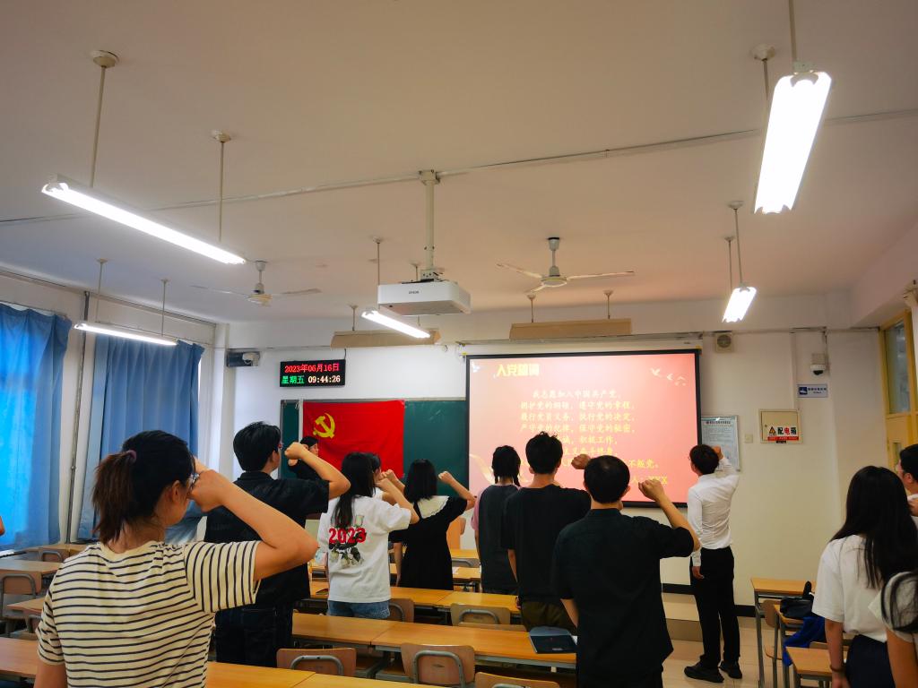 最后,在程希领誓下,会场内党员全体起立,举起右手,紧握右拳,面向党旗庄严宣誓,在铮铮誓言中重温入党初心,坚定理想信念,牢记职责使命。