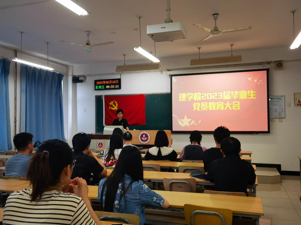 为加强毕业生党员党性教育,6月16日上午,理学院在教学楼312教室召开2023届毕业生党员大会。学院党委书记张蕊、学生党支部书记、毕业班辅导员出席,全体毕业生党员参加。会议由研究生毕业班辅导员李姗姗主持。