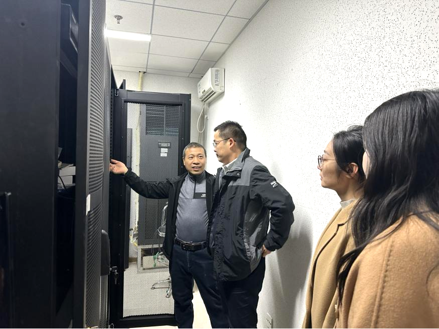 朱郴韦一行实地参观了服务器机房、电子阅卷扫描仪等使用情况。