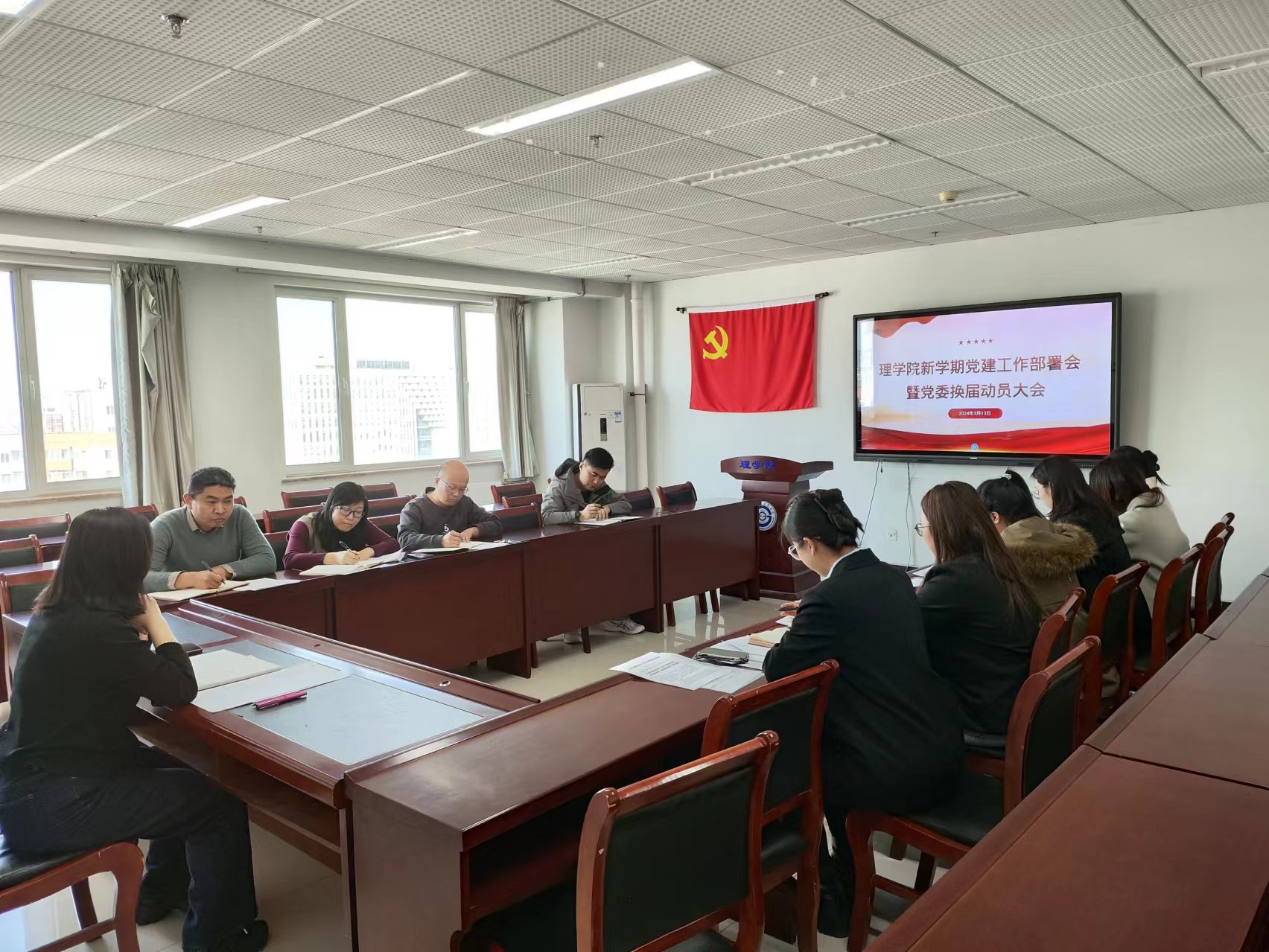 2024年3月13日下午,理学院2024年新学期党建工作部署大会暨党委纪委换届动员大会在逸夫楼1537召开。理学院各教工、学生支部书记参加会议,学院党委书记张蕊主持会议。