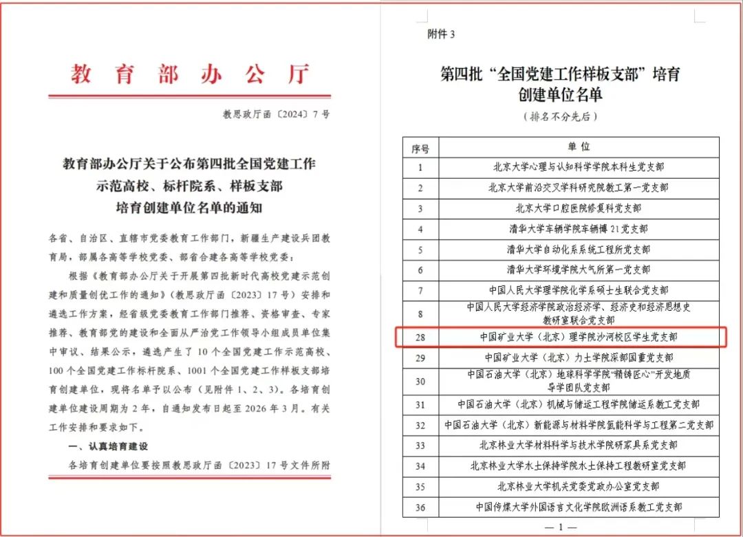 近日,2023年北京高校“双创”活动展示评选活动圆满结束。经学校推荐推荐、资格审查、专家评审、教育部党的建设和全面从严治党工作领导小组成员单位集中审议环节,我院沙河校区学生党支部入选“全国党建工作样板支部”培育创建单位。