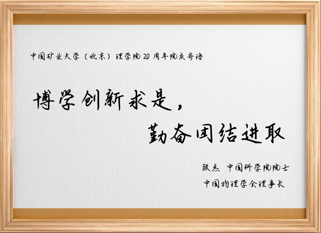 中国科学院院士、北京应用物理与计算数学研究所研究员郭柏灵,中国科学院院士、国家自然科学基金委副主任江松,中国科学院院士汤涛,中国科学院院士、国家天文台研究员赵刚院士为理学院建院20周年发来视频祝福。中国科学院院士、中国科学院物理研究所研究员张杰为我院建院20周年书写寄语”博学创新求是,勤奋团结进取”。