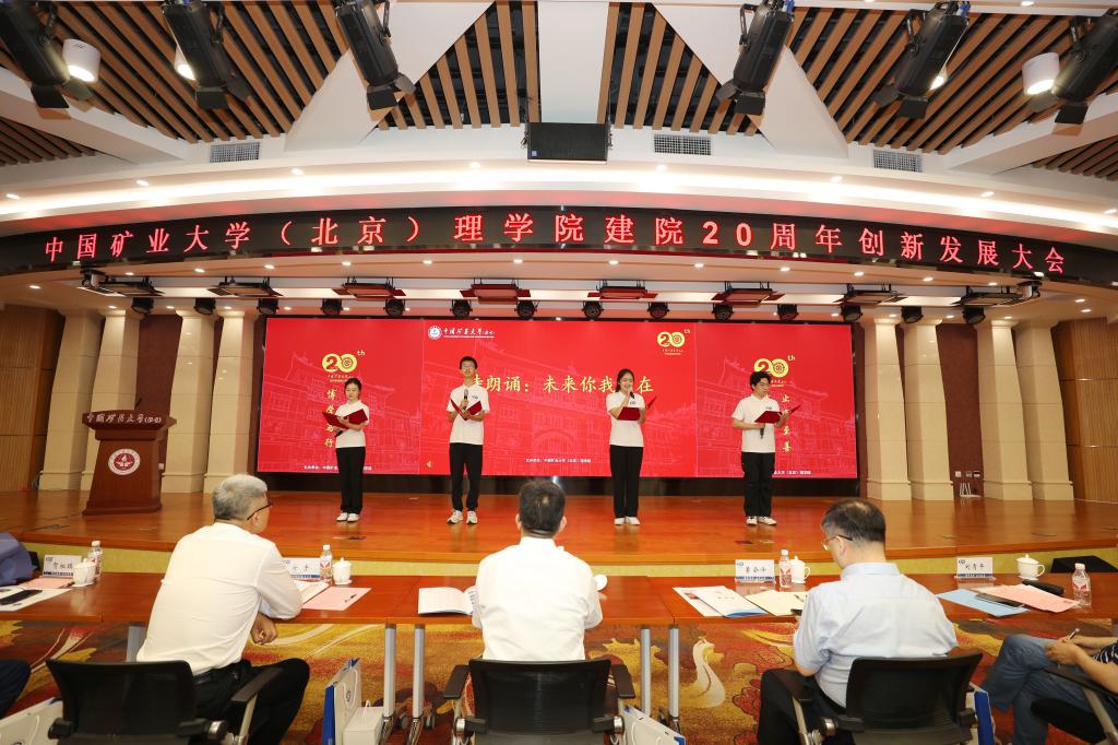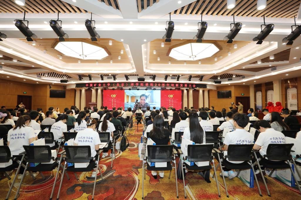 砥砺二十年,博学笃行传薪火,初心二十载,踵事增华续新章。中国矿业大学(北京)理学院建院20周年创新发展大会于5月18日在学院路校区福中苑报告厅隆重召开。出席大会的领导嘉宾有中国矿业大学(北京)校长刘波,校党委副书记安宇,校党委常委、宣传部长董会泽,学院历届班子成员,退休教师,返校校友,学校外联处,曾在学院学习工作的在校干部教师以及学院全体教师、学生代表等。大会由学院党委书记张蕊主持。