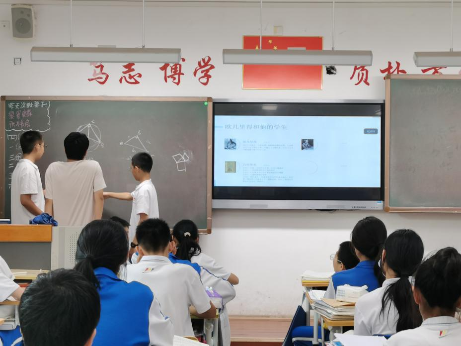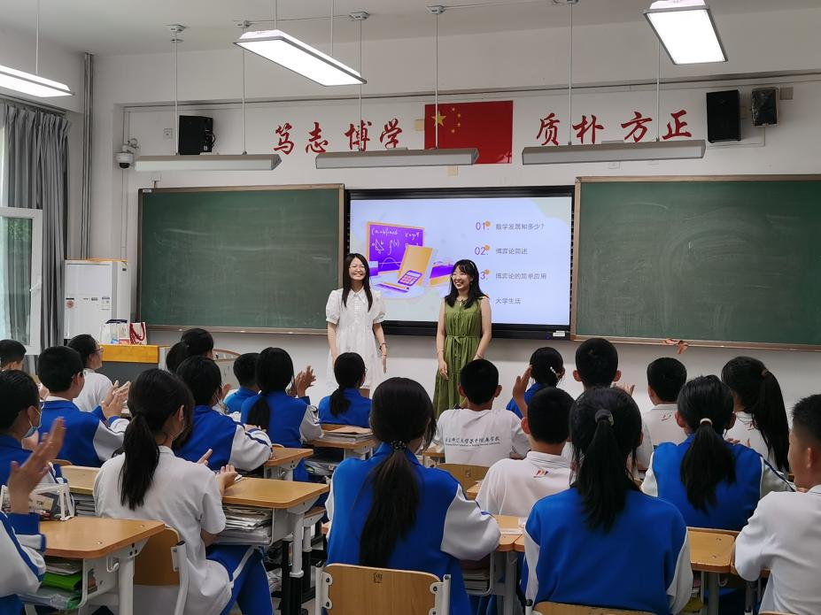 在理学院沙河学生党支部书记朱倩倩与北师大昌平附中支部书记南小康、年级主任张晓琳的安排下,支部成员为七年级10个班开展班会课活动。课上,各班以视频、PPT、数学小题等多种方式引入,对数学发展历史、习题解题方法、物理学原理等知识进行扩充。班会课上还包含趣味游戏、党史问答、数学问题解答、对大学阶段的学习想象以及生活小妙招分享等环节,增强了数理学习的趣味性和互动性,锻炼学生们的逻辑思维和解题能力,加强学生们对党史的了解,增进中学生们对大学生活的了解以及自身目标的树立。