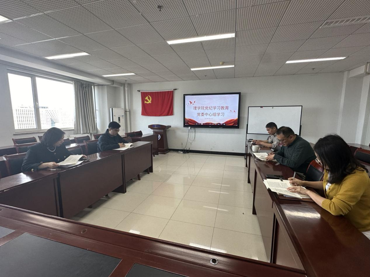 4月23日,理学院党委在逸夫楼1537开展中心组第一次党纪学习教育集体学习会暨读书班第一期学习,理学院全体党委委员参会。会议由理学院党委书记张蕊主持。