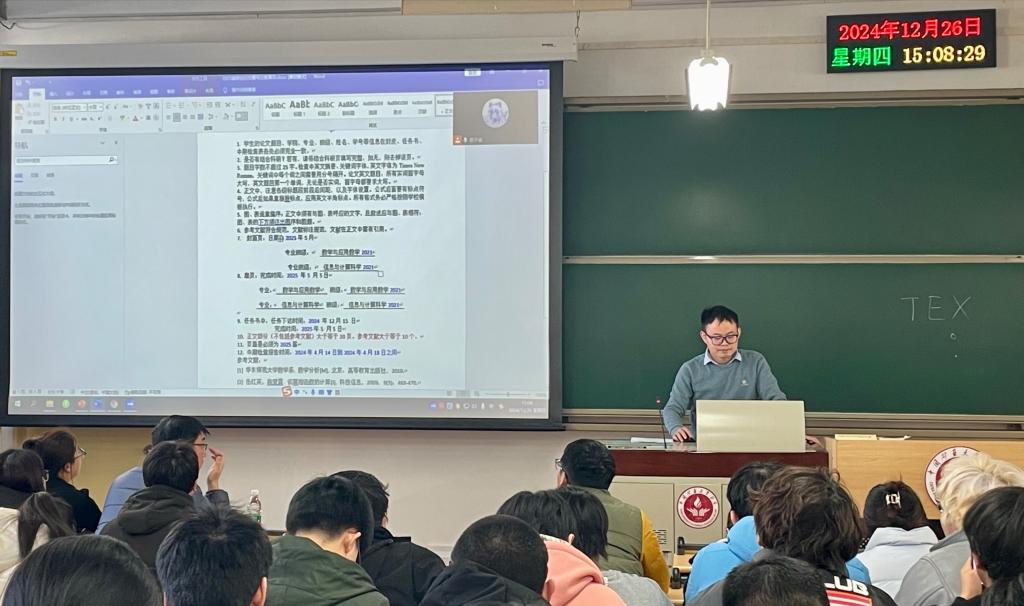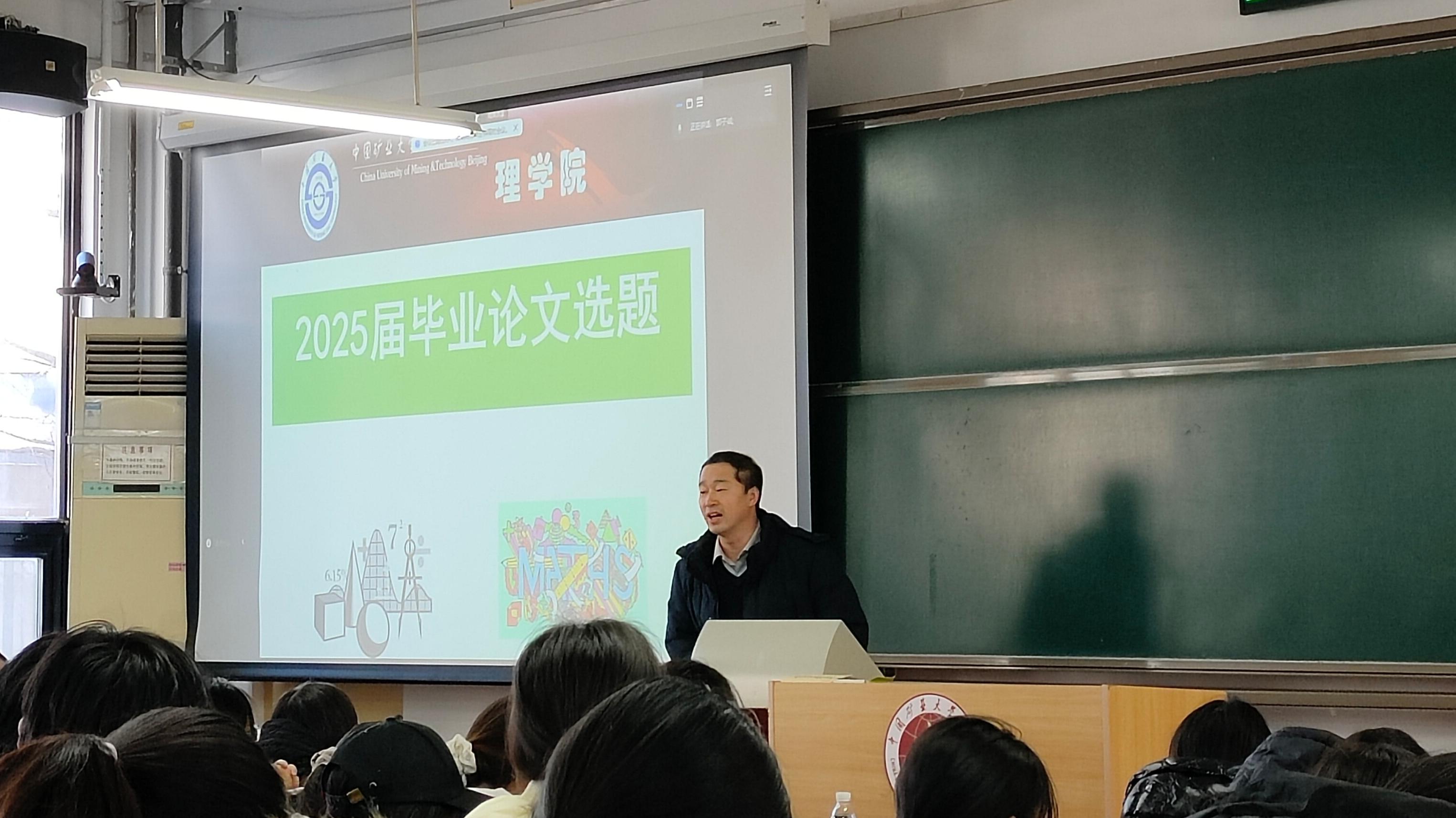 为深化人才培养模式改革,深耕产教融合、科教融汇,培养学生的实践能力和创新能力,理学院与企业共建“科技矿场”大学生创新实践基地,开展教育教学合作。2024年12月26日下午14:00,中国矿业大学(北京)理学院2025届本科毕业设计(论文)选题会在教学楼102召开。学校教务处副处长王绍清,美林数据技术股份有限公司华北区总经理谢剑锋,理学院副院长郭春晓,数学与应用数学系副主任付延松,计算数学与统计系副主任王丽,数学建模竞赛负责人张磊等出席会议。理学院137名2025届本科生参加会议,会议由付延松主持。