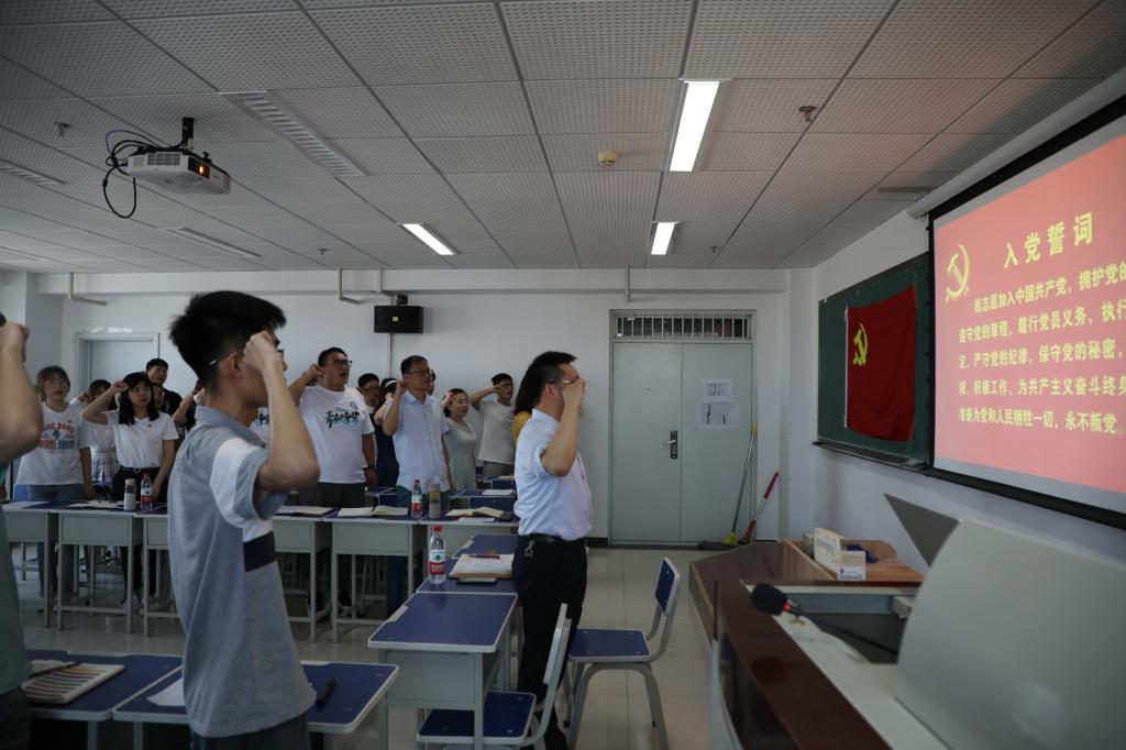 仪式开始,全体人员起立奏唱国歌。仪式上,刘波为参加仪式的新接收16名预备党员颁发《中国共产党章程》和党徽。在支部书记张殿勋的带领下,全体预备党员面向党旗,右拳过肩,郑重进行入党宣誓。两名新接收党员代表高思琪和吕一笑同志分别发言,他们郑重承诺,会不断提升自己的思想政治素养,自觉抵制腐朽思想的侵蚀,明辨是非善恶,保持党员的先进性,全心全意为人民服务。