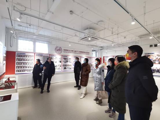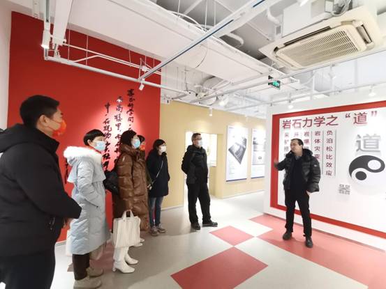 计算数学与统计系教师一行参观了深部岩土力学与地下工程国家重点实验室展厅,刘冬桥书记详细讲解了重点实验室的历史沿革及主要创新性研究。在一张张图片展板、一件件实物模型前,参观教师们不时驻足观看,认真听取讲解,讨论有关情况。教师们还参观了深部软岩气体吸附实验系统、深部岩爆实验系统等实验室分室,一件件采用先进材料和工艺制造的设备仪器有序摆放,教师们近距离感受了国家重点实验室开展深部岩体力学与灾害控制基础理论、应用技术、工艺方法与工程材料的创新性研究。