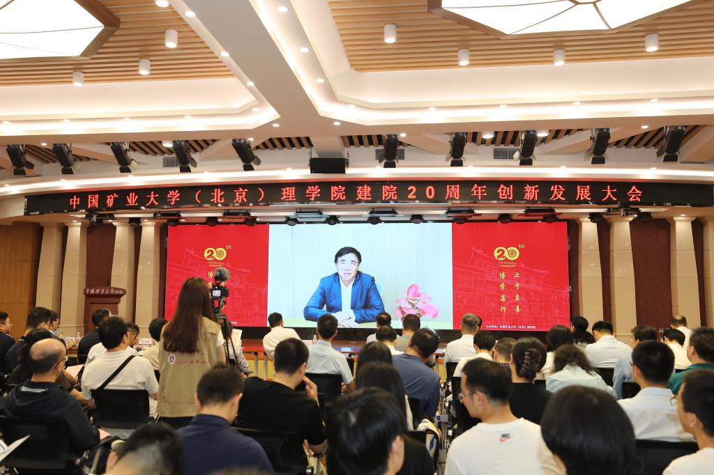 砥砺二十年,博学笃行传薪火,初心二十载,踵事增华续新章。中国矿业大学(北京)理学院建院20周年创新发展大会于5月18日在学院路校区福中苑报告厅隆重召开。出席大会的领导嘉宾有中国矿业大学(北京)校长刘波,校党委副书记安宇,校党委常委、宣传部长董会泽,学院历届班子成员,退休教师,返校校友,学校外联处,曾在学院学习工作的在校干部教师以及学院全体教师、学生代表等。大会由学院党委书记张蕊主持。