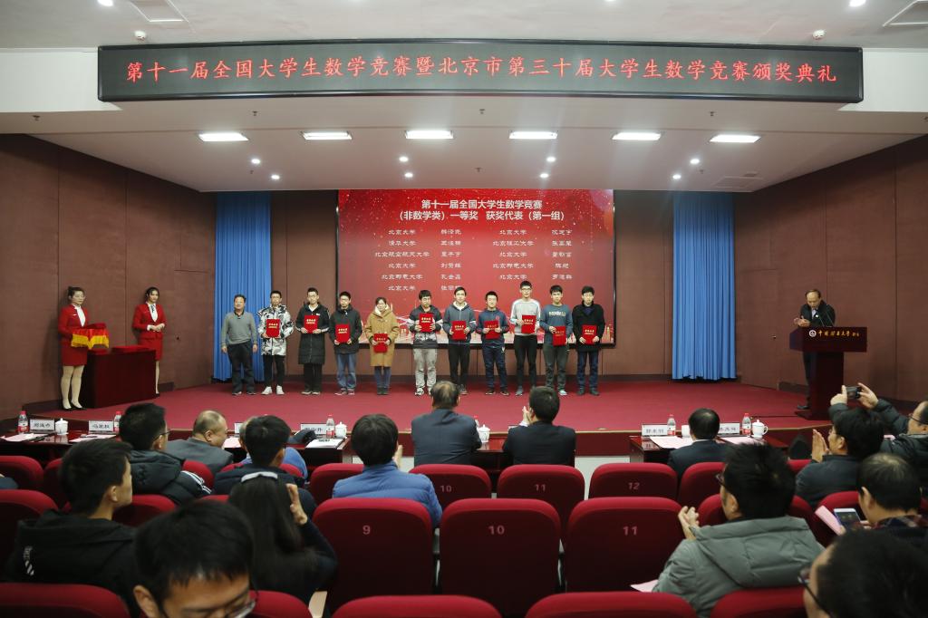 全国大学生数学竞赛是由中国数学会主办的面向本科生的高水平学科竞赛,我校自今年6月开始筹备本届比赛,在相关部门的支持和理学院的努力下,完成了竞赛的组织、培训等工作。本届比赛我校共有308人参加,其中数学类32人,非数学类276人,共155名同学(非数学类144 人,数学类11人)取得了优异成绩,获得北京市非数学类(甲组)一等奖22名,二等奖43名,三等奖61名;北京市非数学类(丙组)一等奖4名,二等奖6名,三等奖8名;北京市数学类一等奖2名,二等奖3名,三等奖6名。获奖比例、名次等都取得了近年来的最好水平。