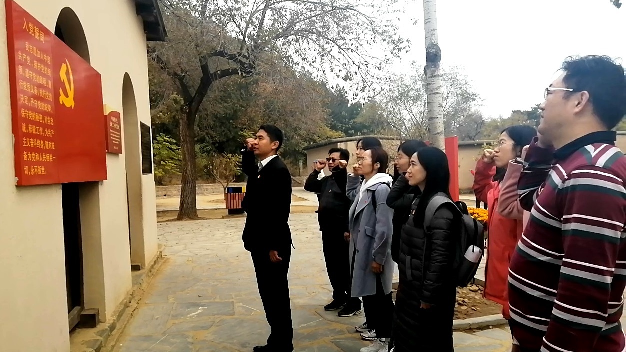 在七届二中全会会址前,支部成员在书记吴楠的领誓下,重温了入党誓词。“我志愿加入中国共产党,拥护党的纲领,遵守党的章程,履行党员义务,执行党的决定,严守党的纪律,保守党的秘密,对党忠诚,积极工作,为共产主义奋斗终身,随时准备为党和人民牺牲一切,永不叛党。”的誓词久久在西柏坡的上空回响。