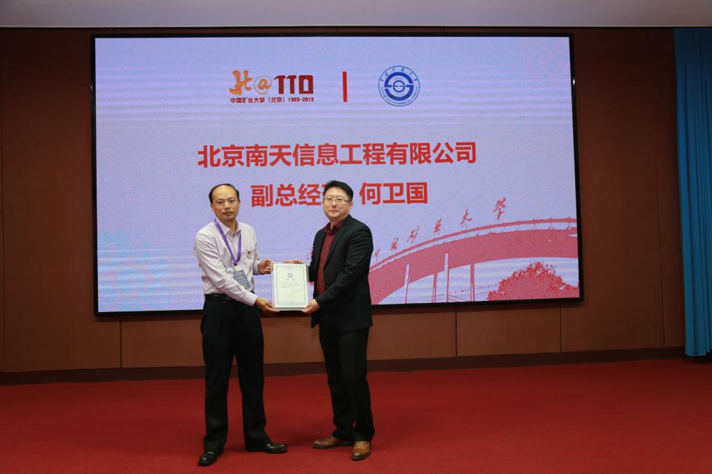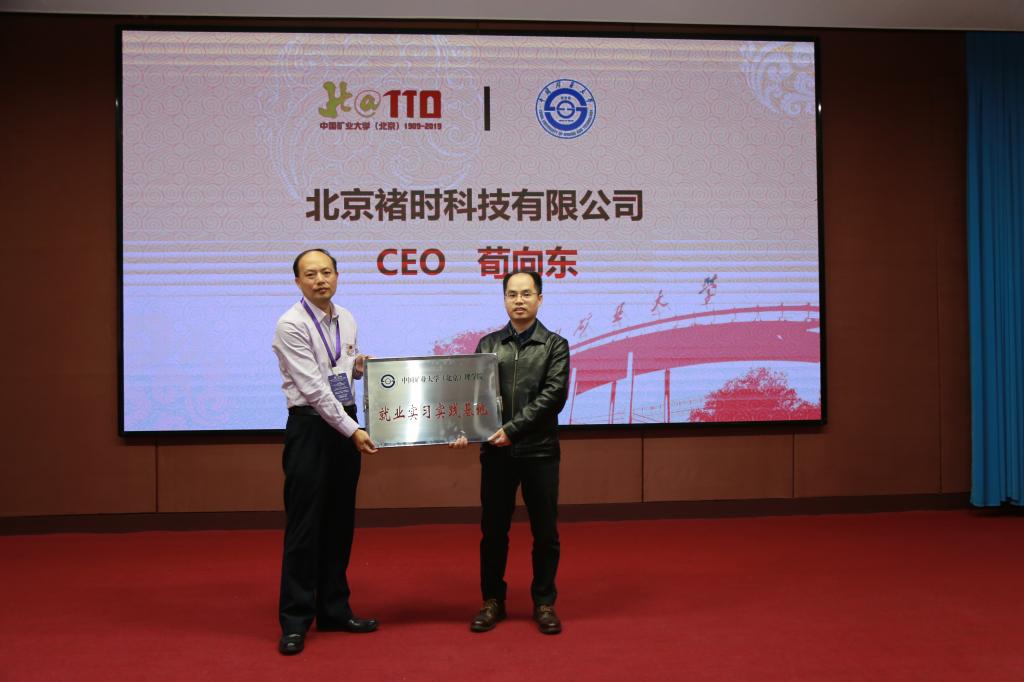李再兴院长向陈宏宇、何卫国、查剑鸣、姚军、荀向东、刘绍平等6位优秀校友颁发中国矿业大学(北京)理学院创新创业导师聘书;为北京挑战者科技有限公司、北京南天信息工程有限公司、北京草帽互娱网络科技有限公司、科迪通达科技有限公司、北京褚时科技有限公司、北京乐飞天下信息技术有限公司等6家就业实习实践基地授牌。