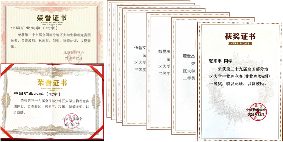 为培养我校大学物理拔尖人才,林南省、程涛、刘菊、郭宏宇等四位物理教师开设了选修课《改变世界的物理学》,对报名参加全国部分地区大学生物理竞赛的学生进行培训。课程开设后,极大地提高了学生的学习兴趣和积极性,大学物理竞赛成绩也逐年提升。自2019年实现一等奖零的突破后,21年在一等奖持平的情况下,获奖人数较前两年平均提高了80%,23年延续了之前的上升势头,共有11人获奖,其中一等奖1名,二等奖2名,三等奖8名。