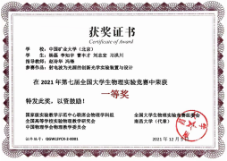2021年9月份,在我校理学院、教务处、机电学院、力建学院等多部门的联合领导与支持下,理学院物理系与实验教学中心赵诗华、黄华俊、赵靓等七名教师组成的物理实验竞赛指导团队克服疫情困难,带领我校学生斩获国赛4项一等奖,1项优秀奖。本次比赛中参赛高校近500所,参赛队伍近1600支。我校五支参赛队伍在众多队伍中脱颖而出,取得了令人骄傲的佳绩,是我校国家级赛事中一等奖获奖率最高的一次。一等奖数量为全国高校最高(并列),充分展示了我校师生的创新能力与近几年我校本科生的实践教学成效。