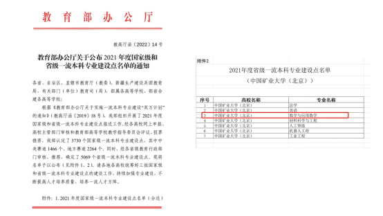 近日,教育部公布2021年度国家级和省级一流本科专业建设点名单,我院经过前期认真筹划和积极准备,最终数学与应用数学专业获批北京市一流本科专业建设点。目前,我院所有本科专业已实现省级及以上一流本科专业建设点全覆盖。